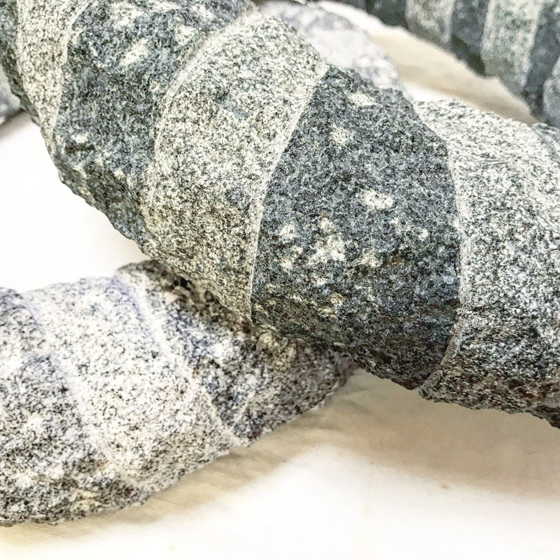 渦を巻いてる石の輪「渦丸」白と緑の御影石で作ったふたつを土曜日からの仙台での個展に展示予定です。