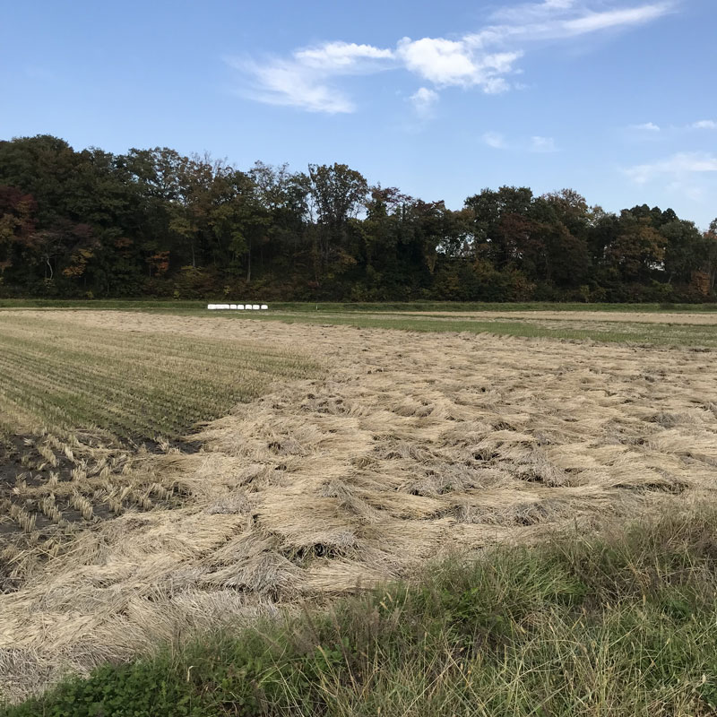 先日の大雨で水に浮いて風で1ヶ所に集められてしまった稲藁。後処理が大変だ。