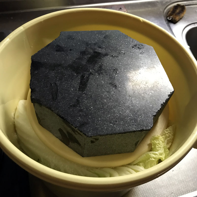どちらも同じ大きさだけど白御影石は7kg、緑御影石は8kgなんですよ。
