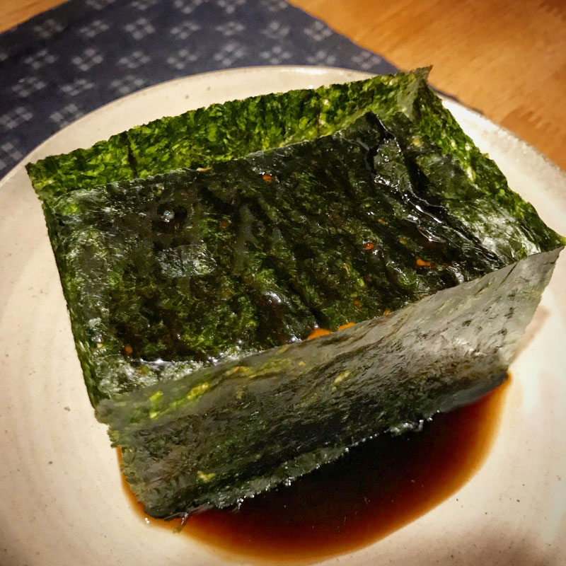 豆腐ですw 海苔とわさびで冷奴にするので豆腐に海苔をまんべんなく貼り付けて湿気るのを待ってますw