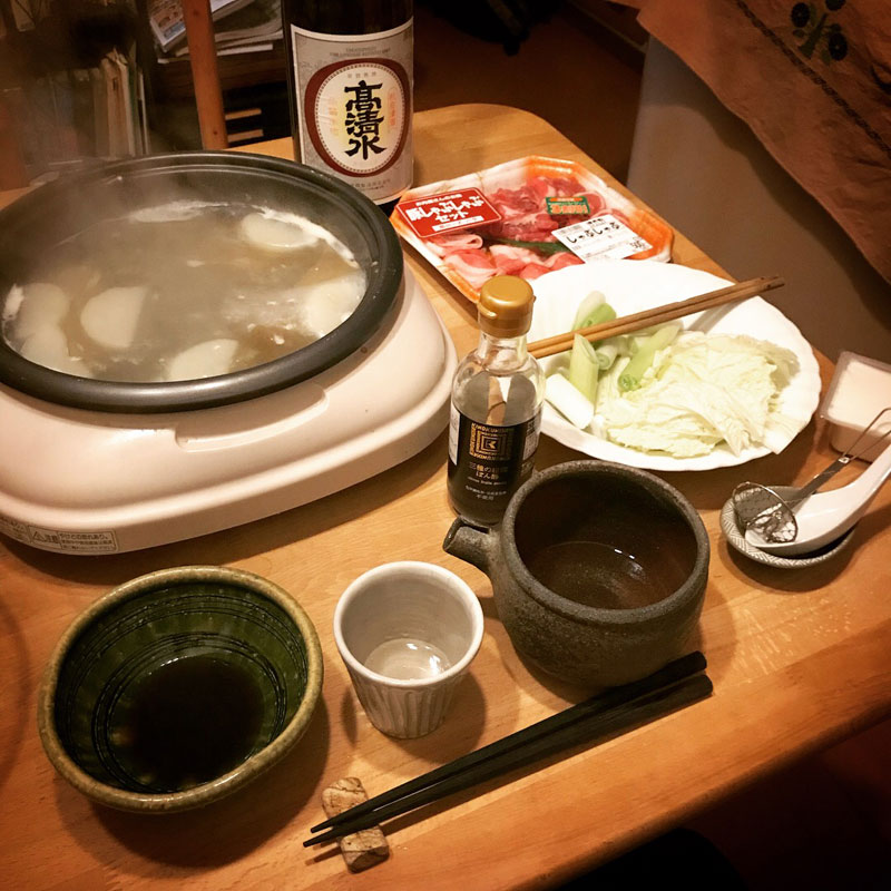 個展帰りにスーパーでお買い得品の肉を買ってきて、昨日の続きのひとり鍋。