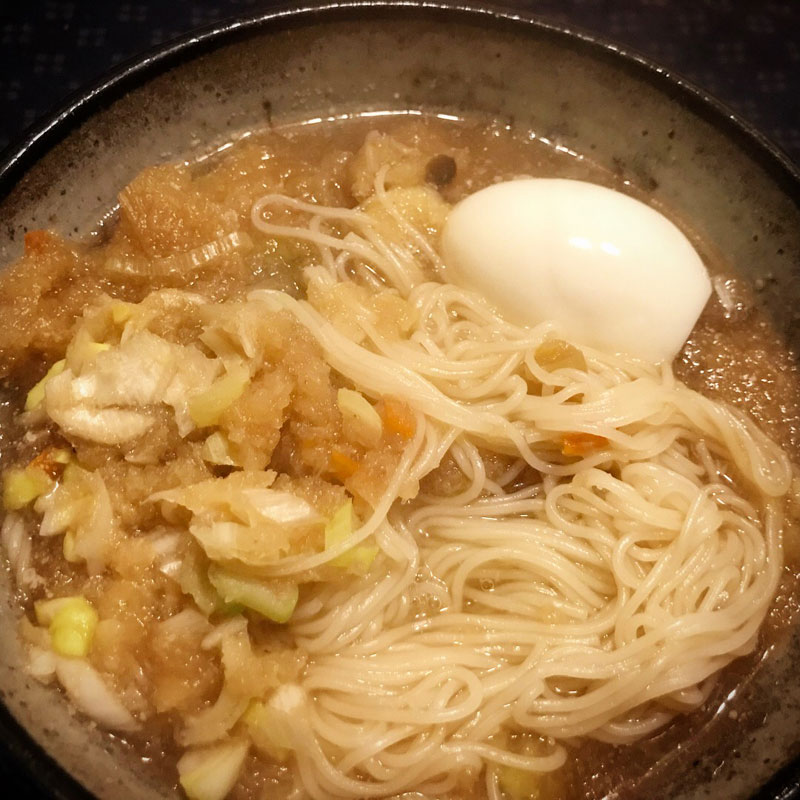 素麺を茹でて、水でぬめりをとったら熱湯をくぐらして汁に投入。温まったー!