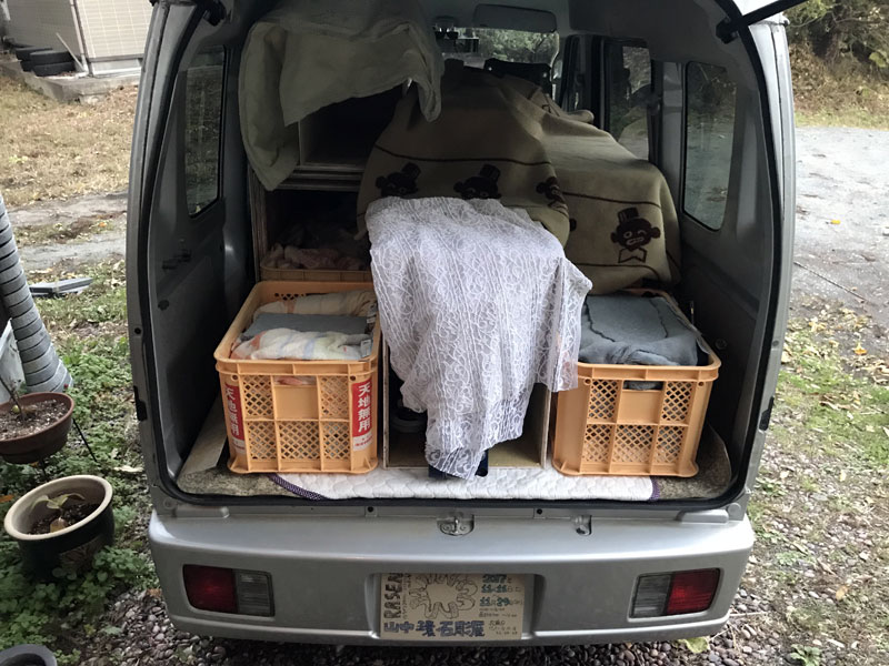 タイムラプス撮影してインスタやネットにアップするので、ダンボールに偏愛してるぺんてるのサインペンで宣伝のいたずら書きをしたのを切ってナンバープレートに貼った。