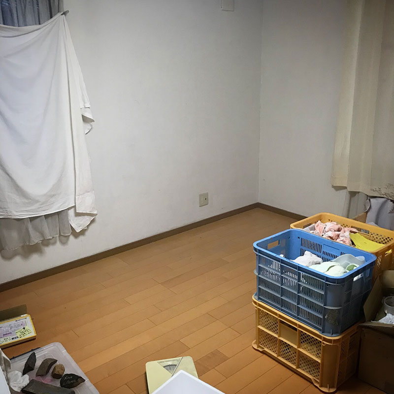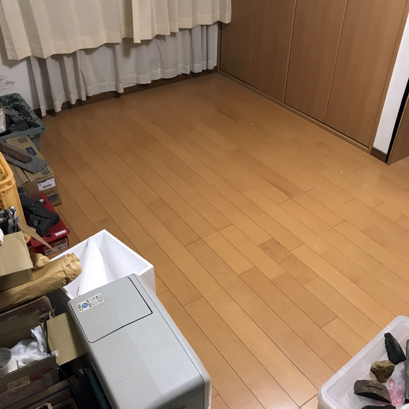 普段は展示台と作品で満タンの部屋に床が久しぶりに現れました。これで個展の間だけお客さまを泊めることができます・笑