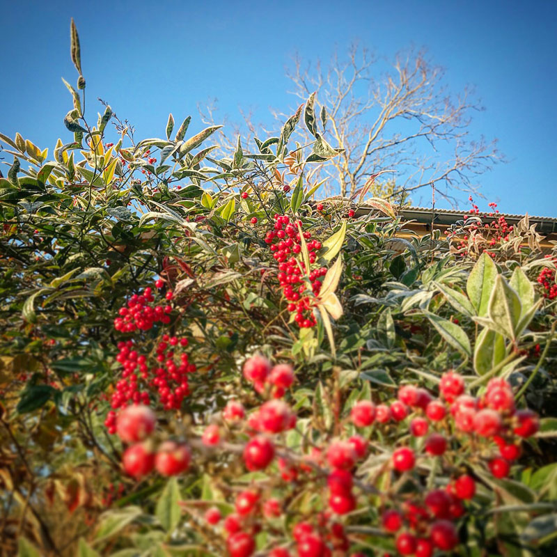庭の南天の実も