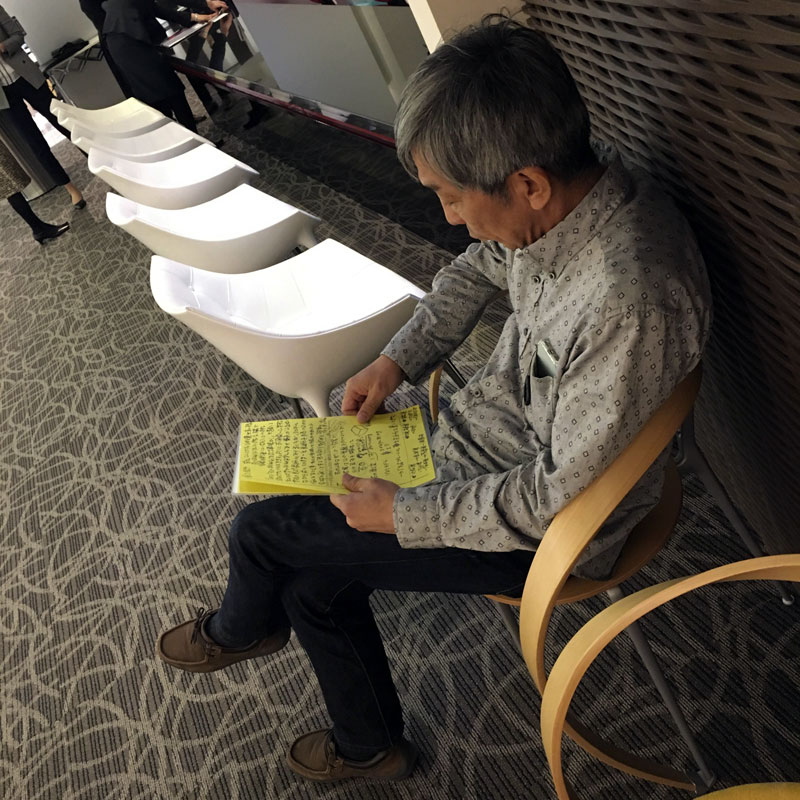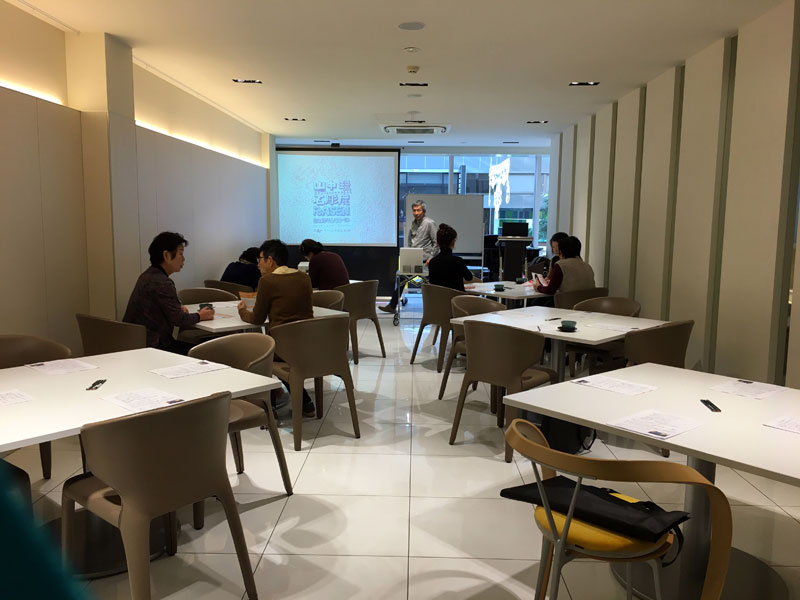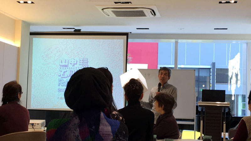 東京から(東京個展の際に1週間スタッフとして一緒にお客さまに対応してくれた)教え子のMaoさんがセミナーに参加しにきましたよ。人前で話すのはただでさえ苦手なのに、教え子まで来て緊張してるところを、その教え子に撮られて苦笑い。