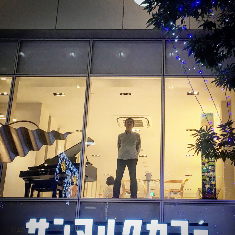 会場の大きなガラスの前に立ったところをMaoさんに撮ってもらった。