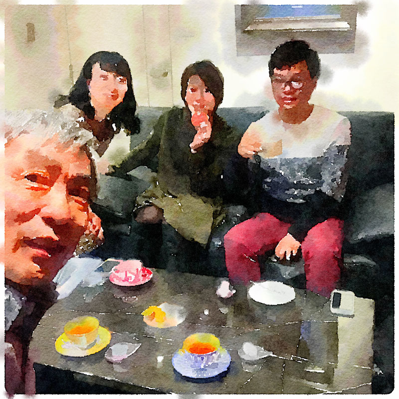 僕の作品の一番のコレクターであるマサミチさんに今回もまた、東京から駆けつけていただいた。控室でMaoさんとカミさんと4人でライフスタイル・コンシェルジュのスタッフの方に入れていただいたお茶でくつろぐ。前回の東京個展の最終日の終了もこの4人で迎えたのでした。ありがたい、としか言えないです。嬉しくて勇気づけられる。