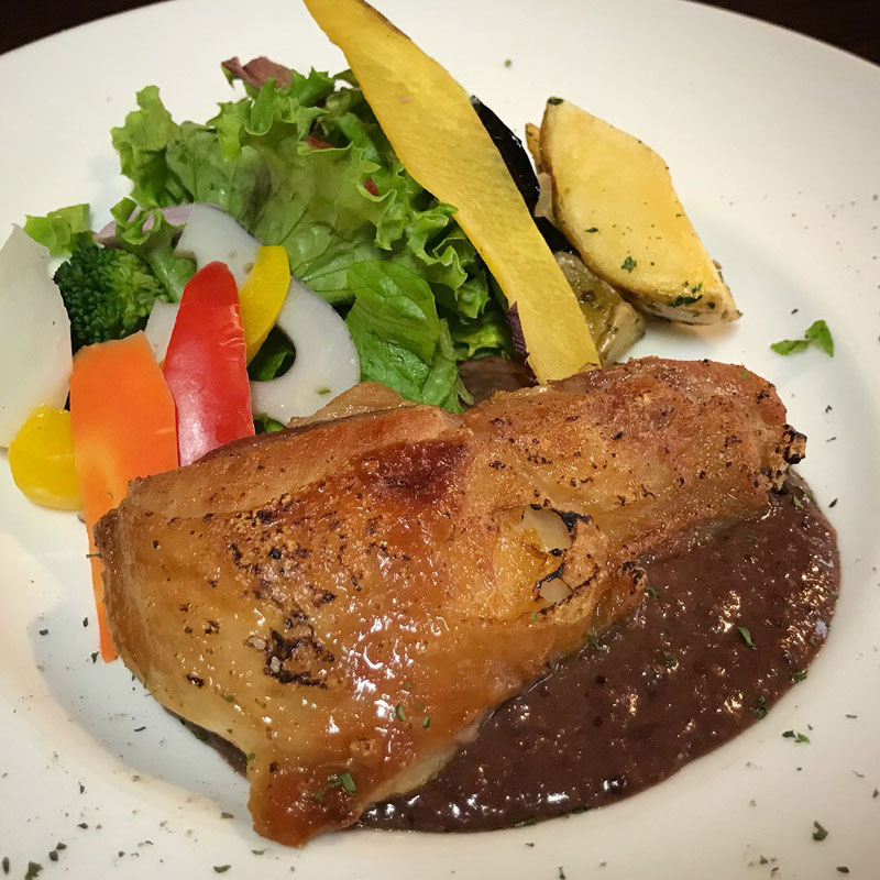 東京から個展を見に来てくれた両親とランチ。親と僕、共通の友達も一緒に。個展があるので僕はワインで乾杯できないのが悲しい。鶏肉のコンフィ、美味しい。