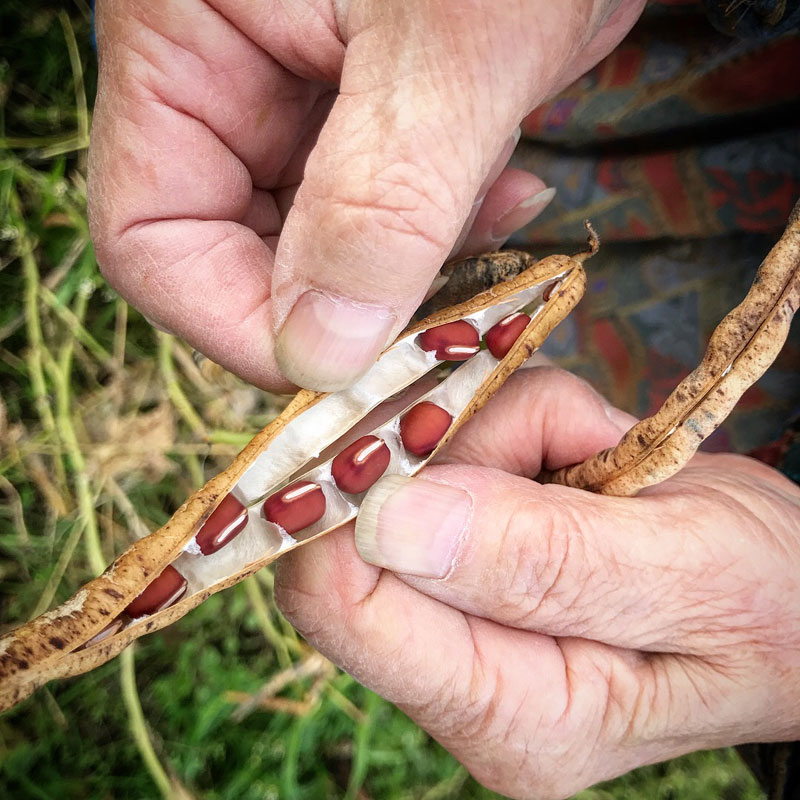 畑になってるの初めて見た。乾いたサヤを開くと小豆が並んでる。可愛い。ほら!と剥いてくれた、僕の大好きなお百姓さんの婆っぱ(お婆さんの愛称:ばっぱ)の手。一生懸命働いて生きてきた人の手は本当に、本当に、素敵だ。