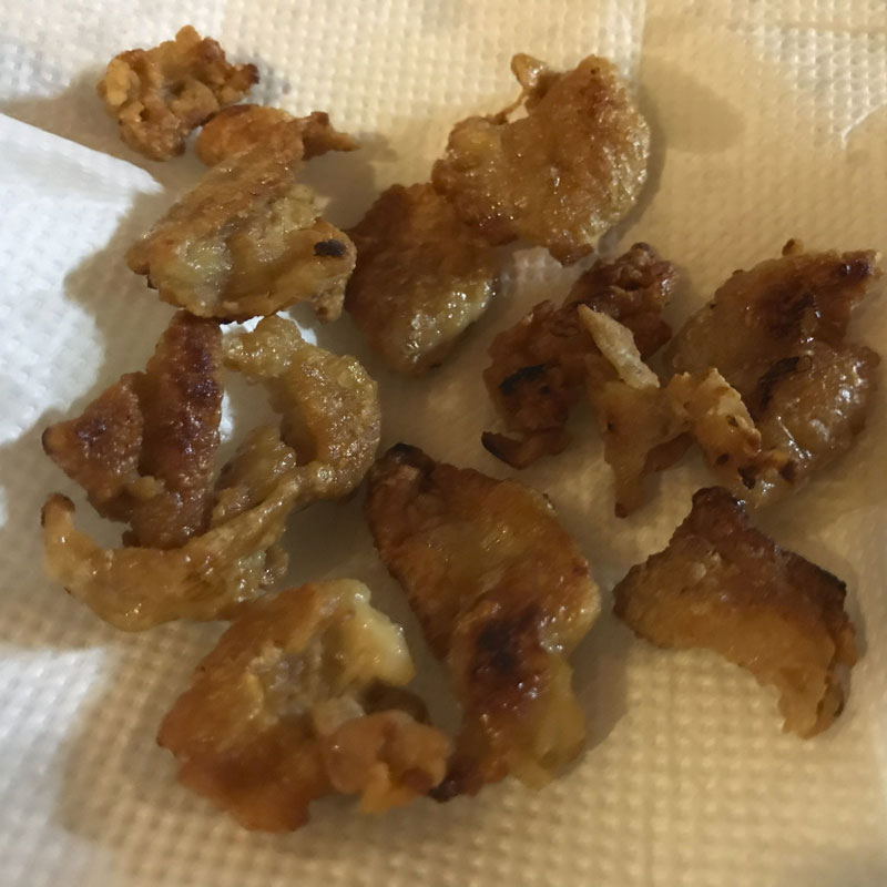 鶏皮を時間をかけてじっくりとカリカリになるまで焼いた。