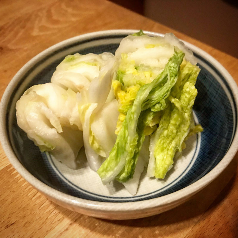 今シーズン初の、白菜の漬物。塩と昆布と鷹の爪。庭の猫の額畑は白菜を作るには狭すぎるので、近所の方にいただける事を期待して作ってない・笑
