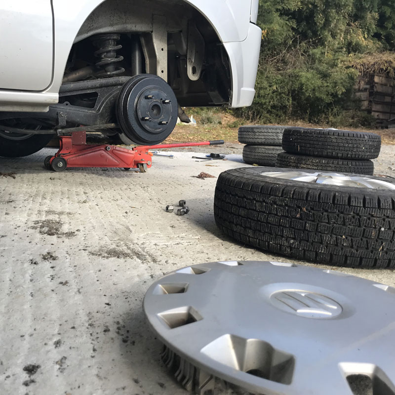 念のため4WDをスタッドレスに変えておく。