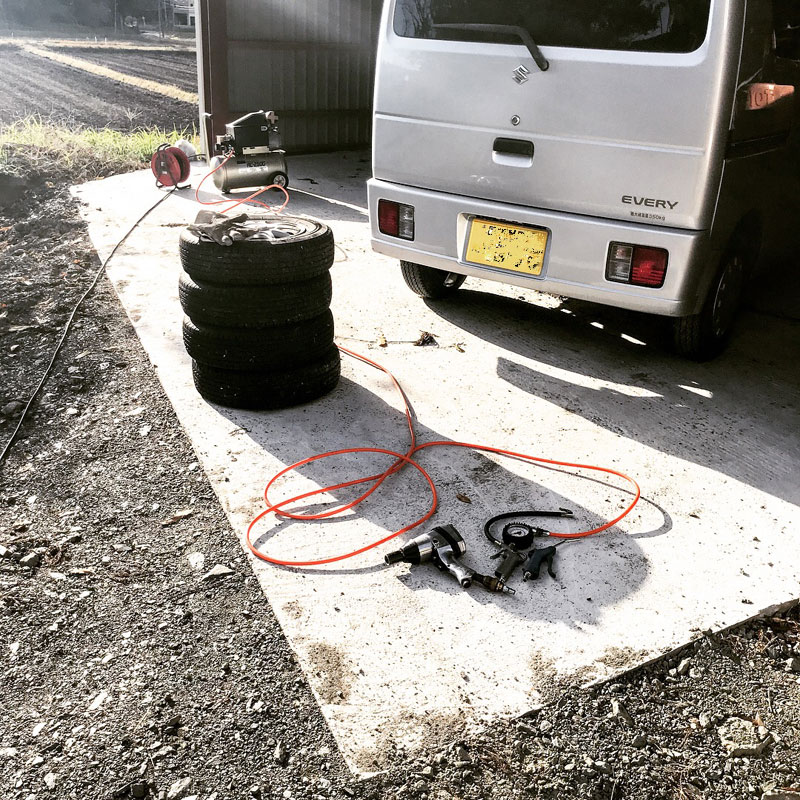 来週、100kg超の石彫を搬出するので軽積載より少し高めに前輪2.5、後輪3.0の空気圧にしておく。
