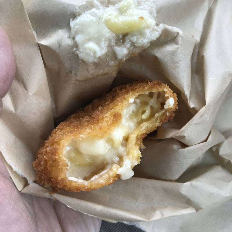 あんまり寒くて、コンビニでグラタンコロッケ買って温まる。