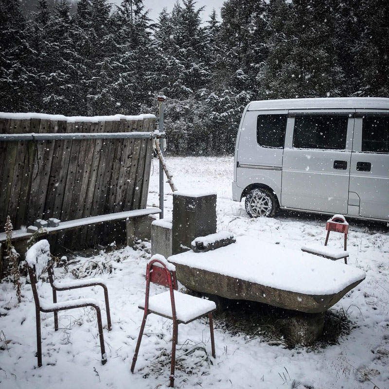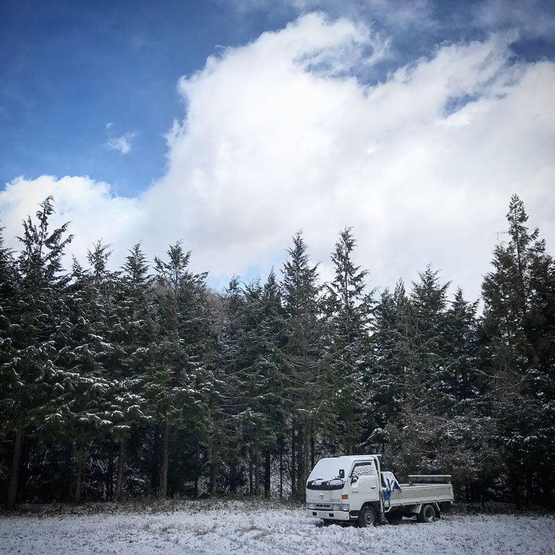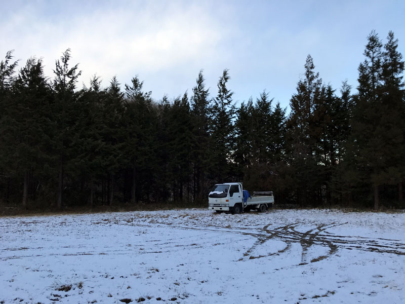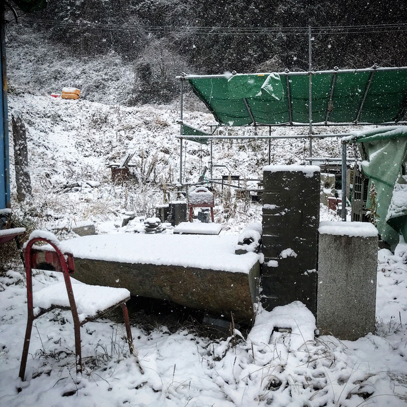 今季、初の本格的な積雪になりそうな仕事場。