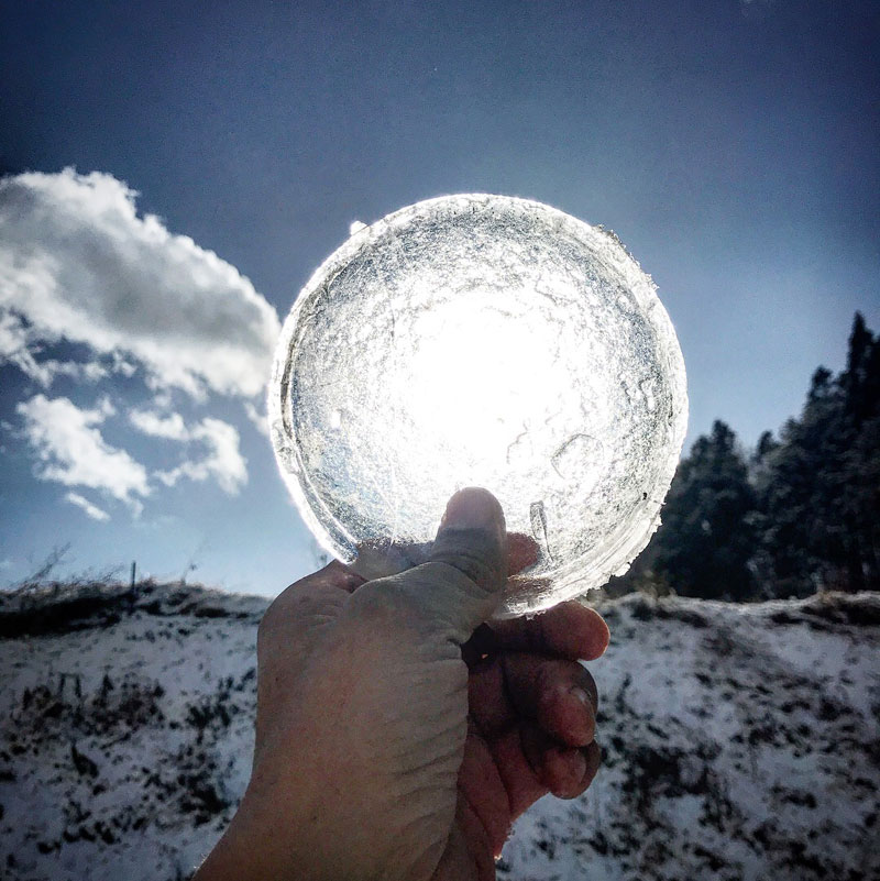 氷の写真撮った後はまた太陽がかげり、強風も吹いてきた。吹雪。