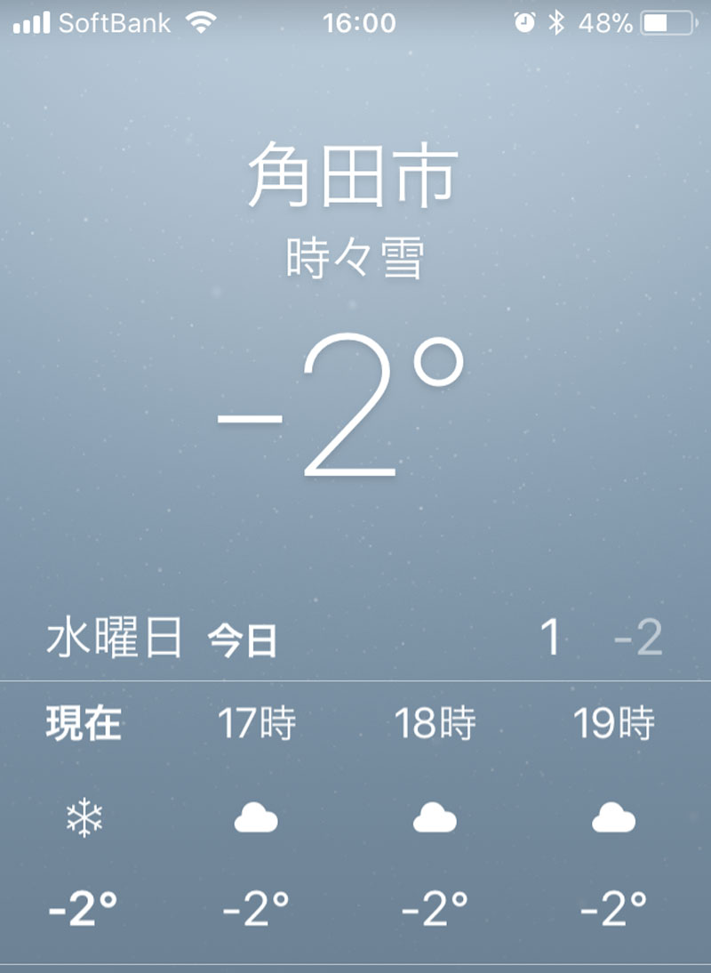 最高気温が0度らしい、本日。
