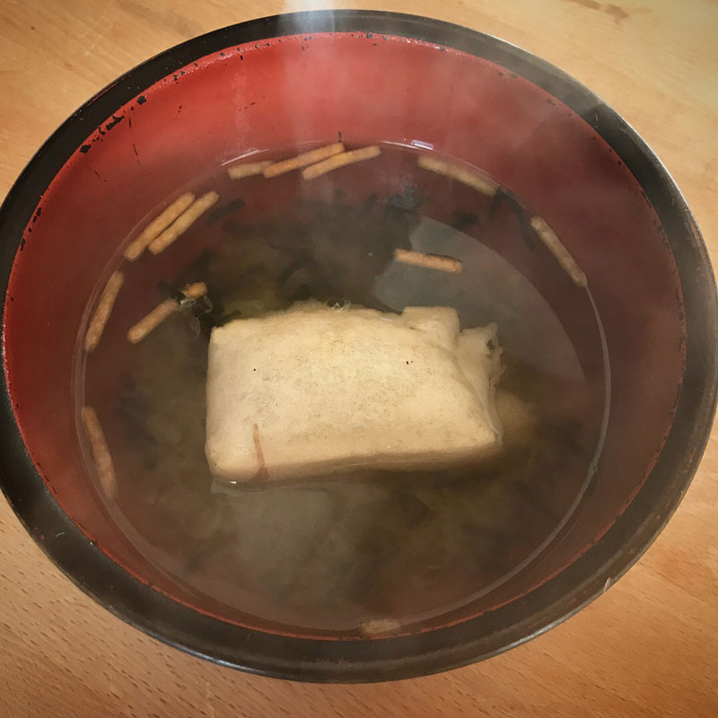 早速雑煮にしていただいた。トースターで焼いて永谷園のお茶漬けと鰹節と一緒に器に入れて熱湯を注ぐだけ。