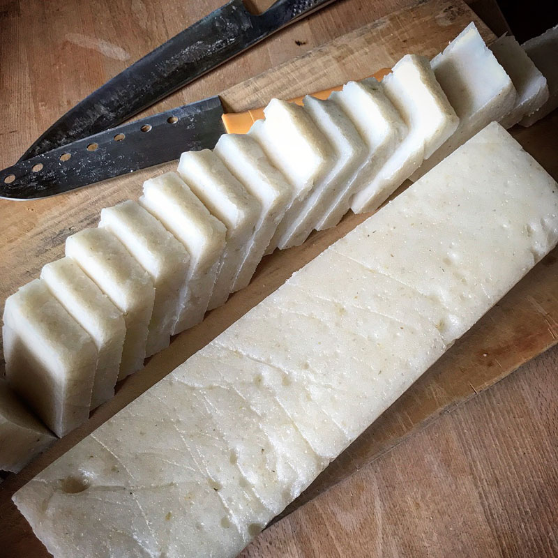 おとといついた餅。ひと臼分いただいたのを切り分ける。少しタイミングが遅かった。硬くて大変。