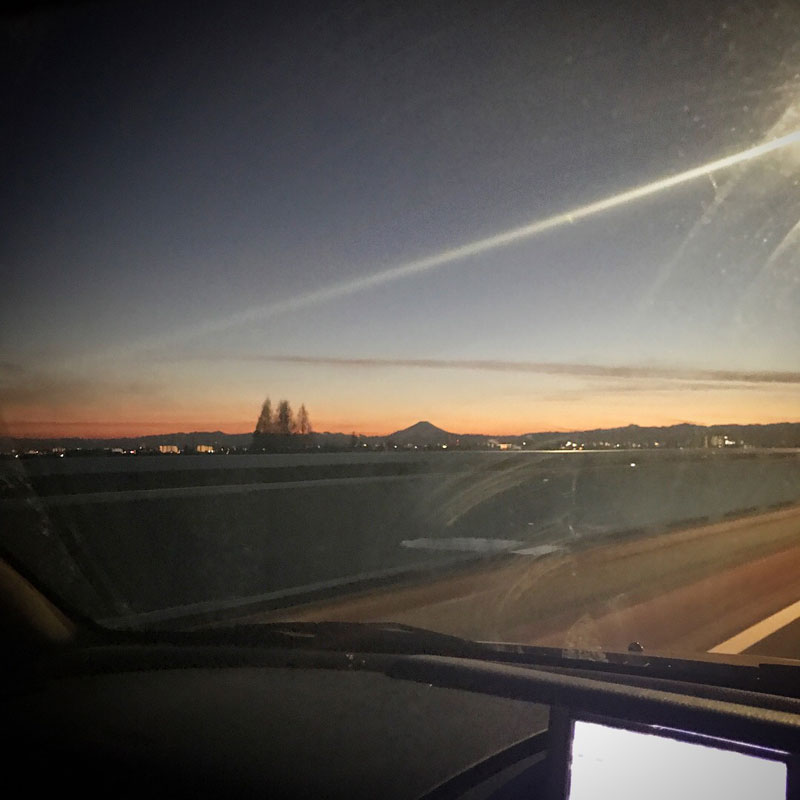 義弟の家に向かう。夕焼けの空の富士山が綺麗。