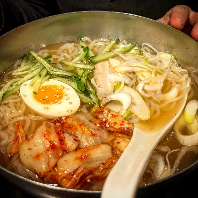 〆に冷麺。盛岡で初めて食べたとき、麺がゴムかよ!と美味しいと思えなかった事はあやまる。冷麺、うまい。焼き肉の〆にはマスト。