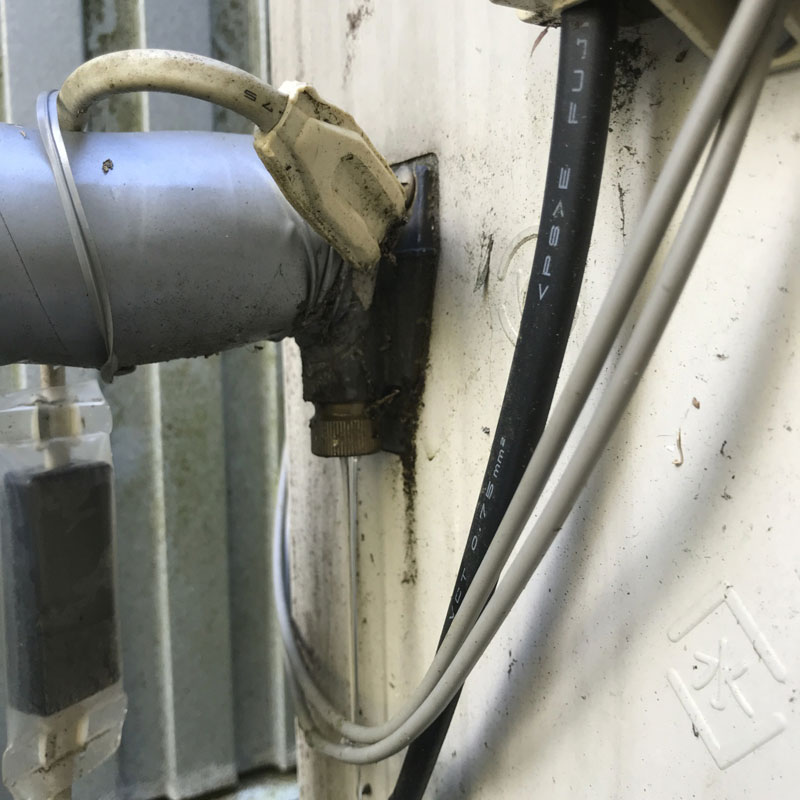 もしかしてと思ってアドバイス通りに給湯器の水抜きを初めてやってみた。(写真は水抜きして水が出ているところ)
