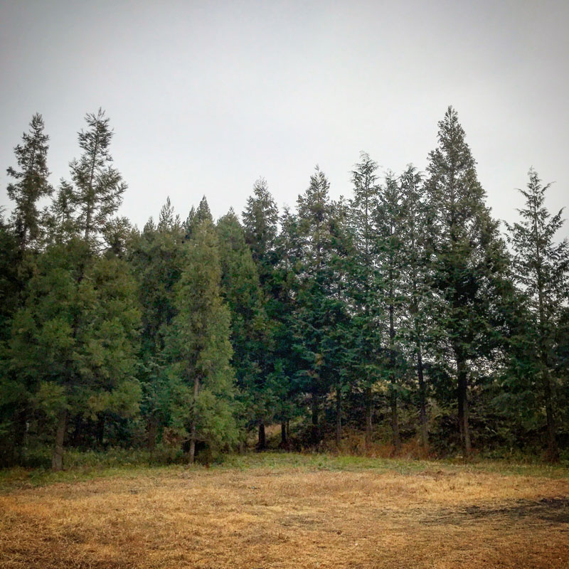 仕事場の石のテーブルの上を何者かが歩き回った足跡。イノシシか?