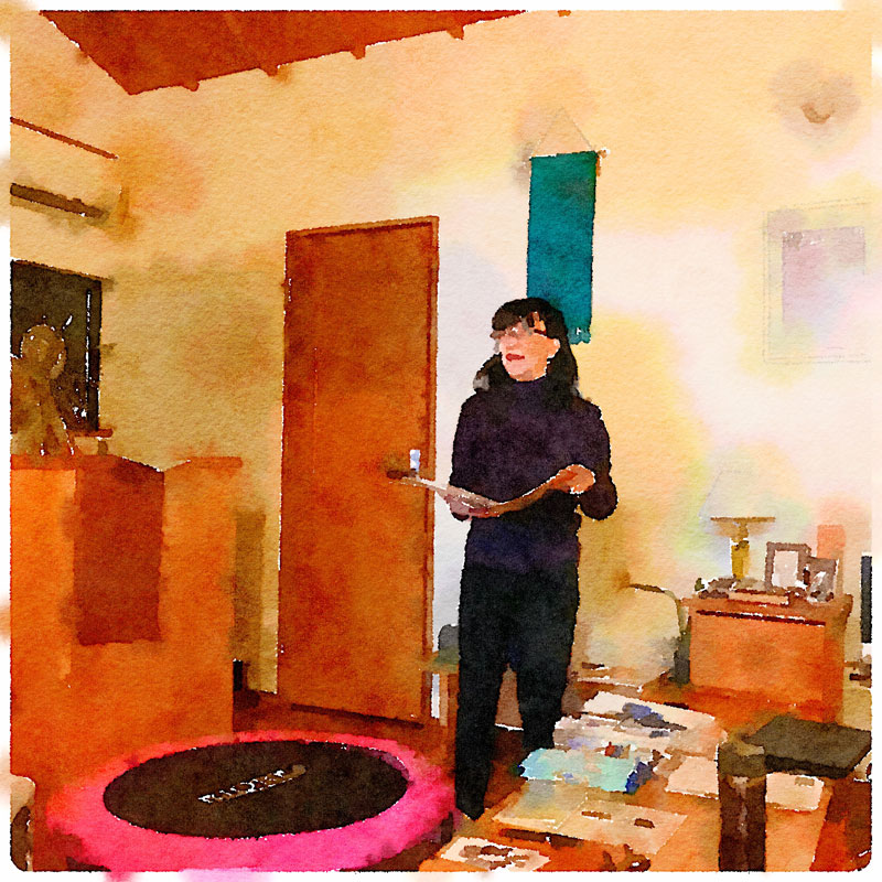 この前買ったコンパクトデジカメに笑顔を検知すると自動的にシャッターが降りる機能があるので仕事場の石テーブルでテストしてみた。目が糸になるくらいのものすごい笑顔にしないとシャッターが降りなかった。カミさんは微笑みで写ったのに。