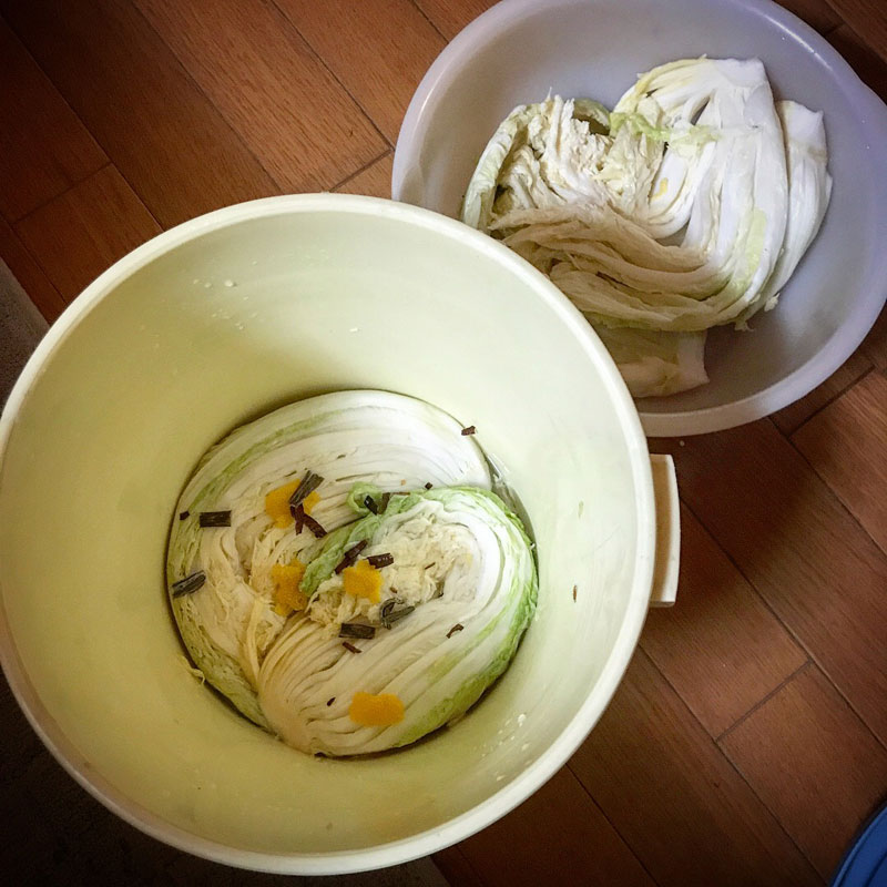 無事、水が(白菜より)上がったので、ひと株は今宵このまま食べる。