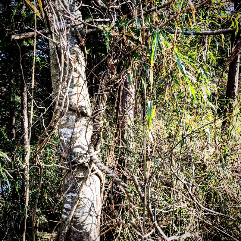 仕事場入り口のねじりにねじりまくった蔓。魅力的な形。