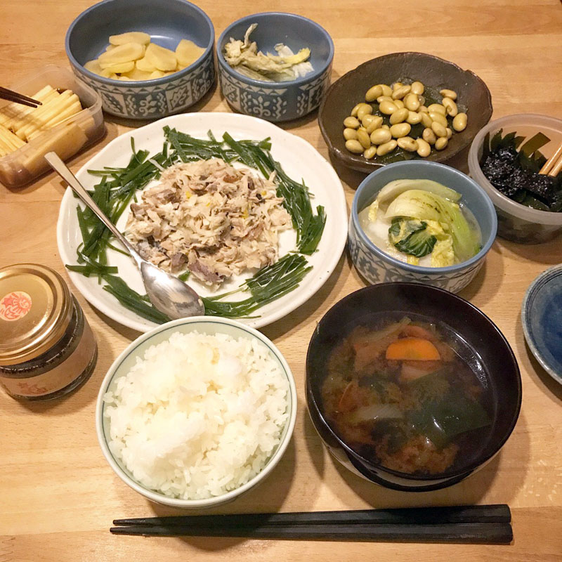 生節(熟成前の鰹節)の玉ねぎポン酢和えに千切り合わせたら美味しい。味噌汁にも。