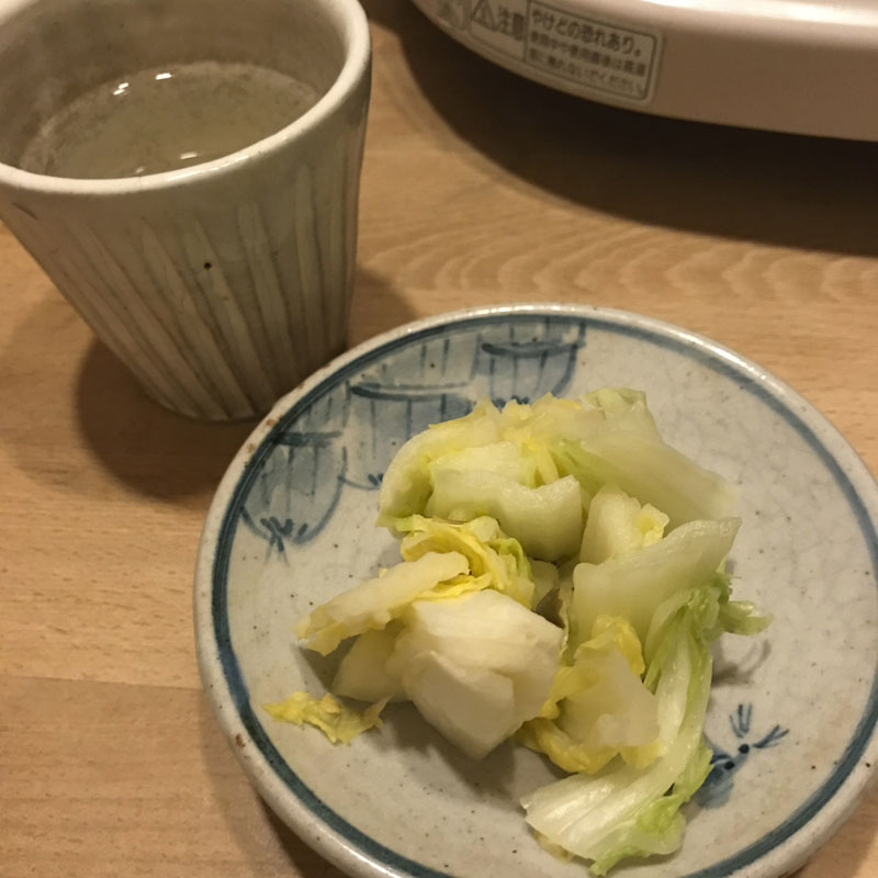 高清水の熱燗と、自家製の白菜の漬け物も。