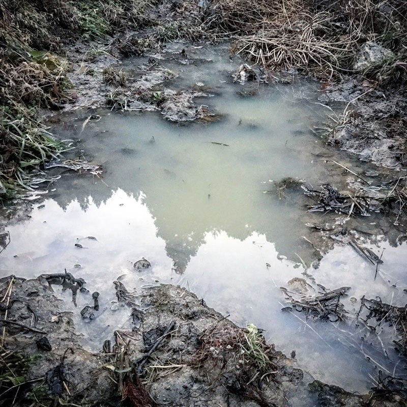 雨、結構降ったなぁ。大きな水たまりたくさん。