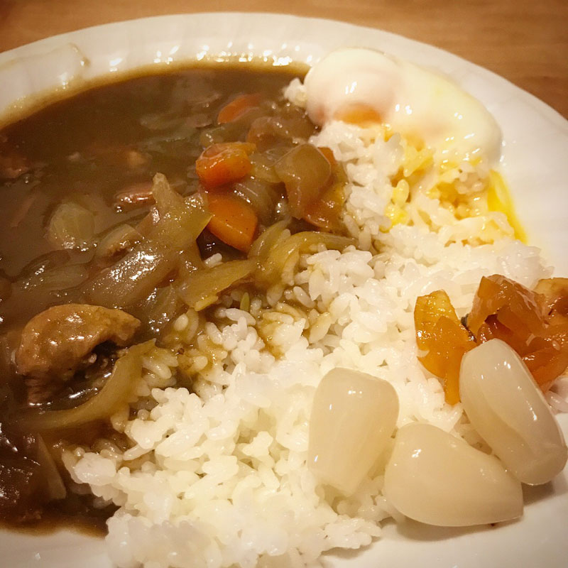 カレーの夕食。我が家はカレー率が意外と高い。なので、