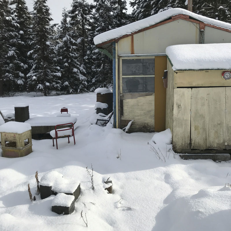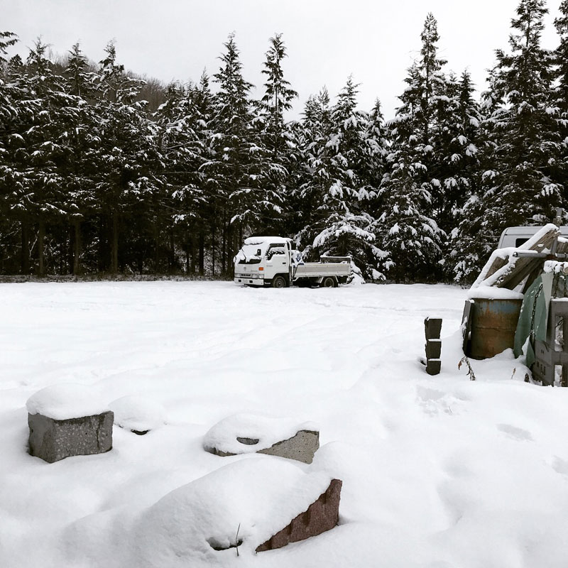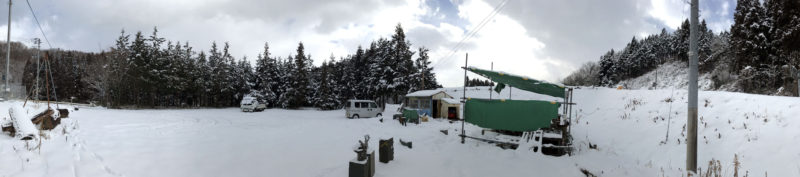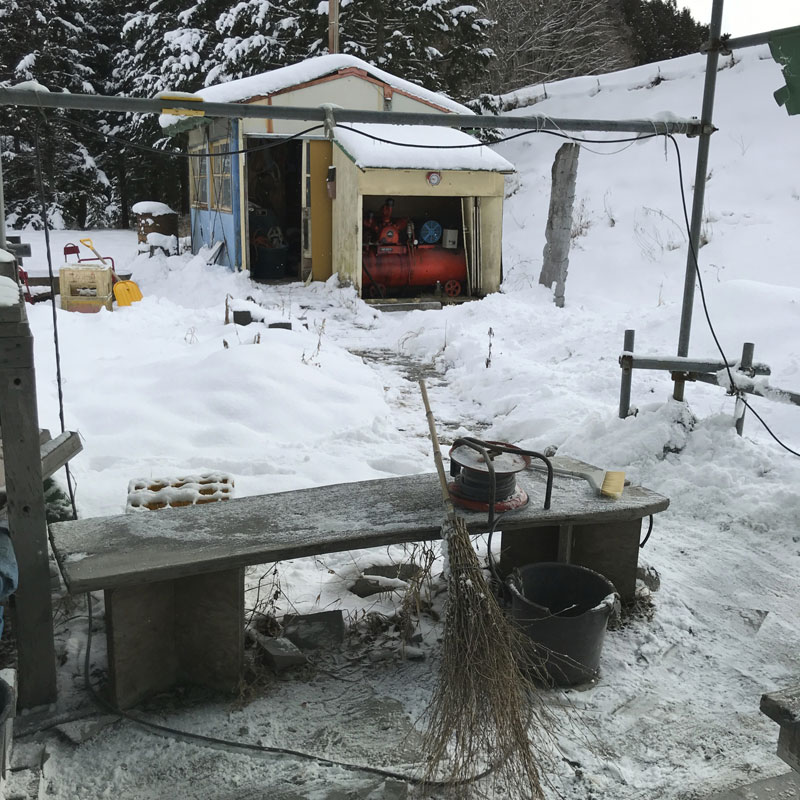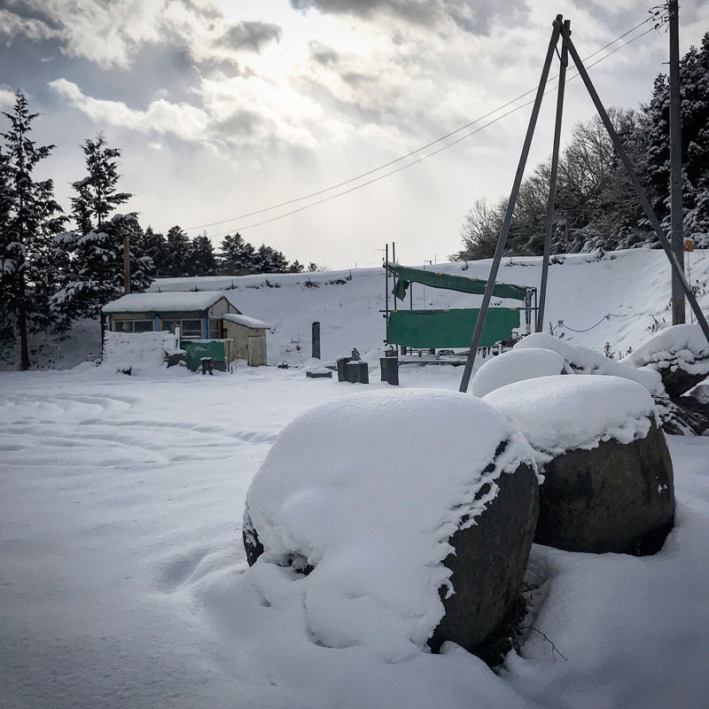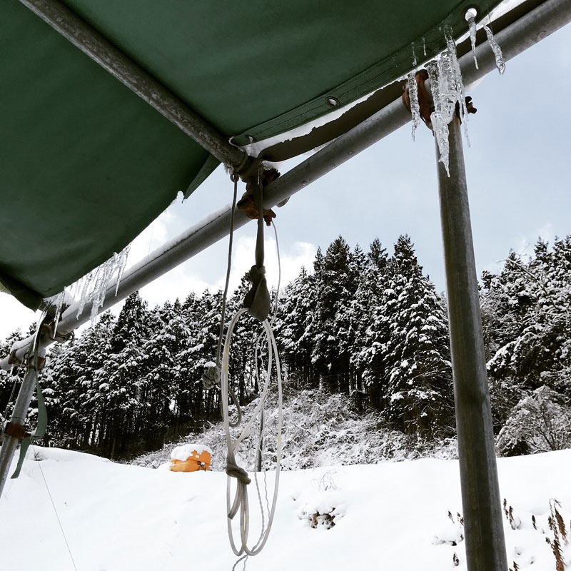除雪車が作った雪の壁の雪かきとテントの雪下ろし。
