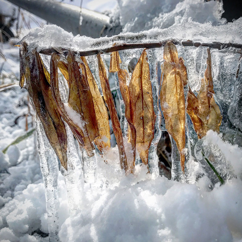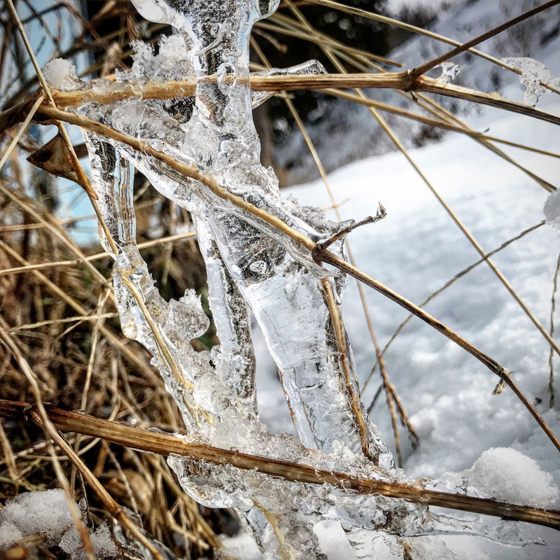 枯れ木と氷のコラボがきれい。