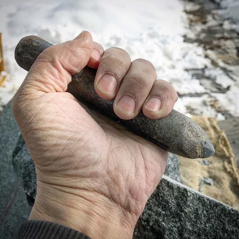 晴れて羽毛のダウンジャケットは着なくてもいいんだけど、氷点下だから、とにかく手が凍える。しかも冷えきった金属のノミを持つので冷たいというより痛い。