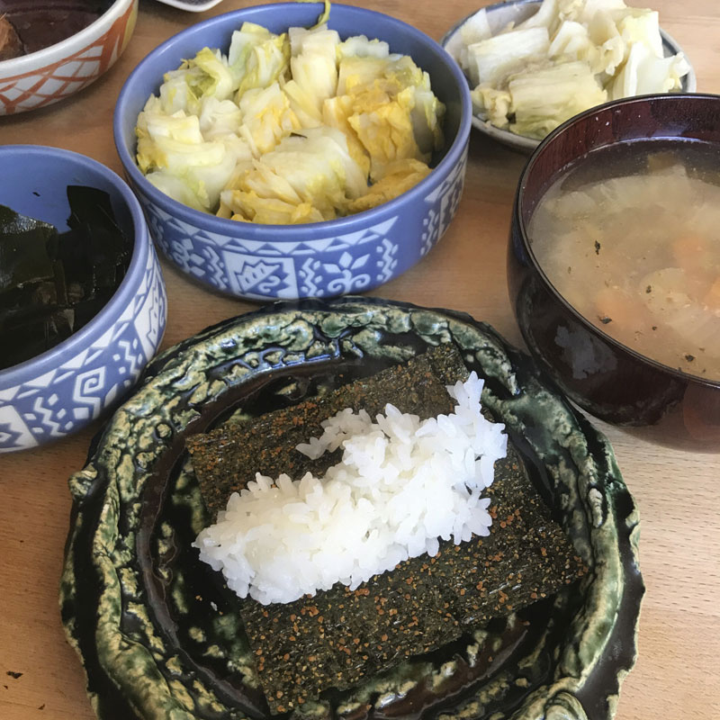 味付け海苔、ならぬ具付海苔をもらったので手巻きの昼食。