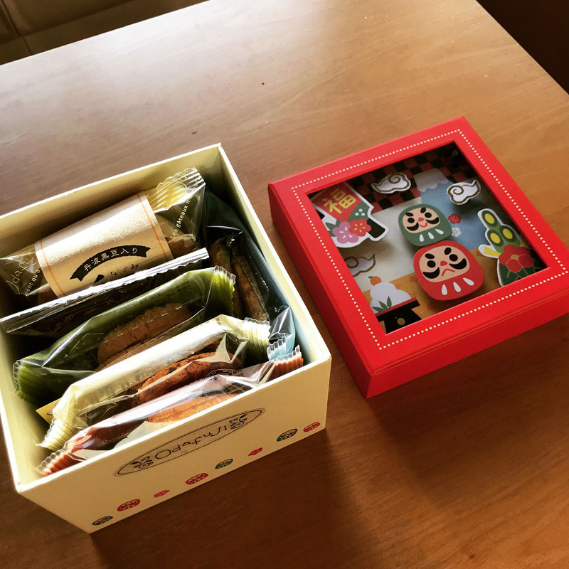 おだふじのクッキー 今日の雑煮はカミさん作。食べ過ぎ、飲み過ぎの正月をリセットするさっぱりとした仕上がり。お餅が美味しい。 妹にもらった、おだふじのクッキーの箱、開けてみた。 美味しそう! 買って来てくれて正月にみんなで食べた、おだふじのプリンも超絶美味しかったなぁ。 この箱は捨てられないな。 2018年1月5日 | コメントはまだありません | カテゴリー: 三日坊主日記