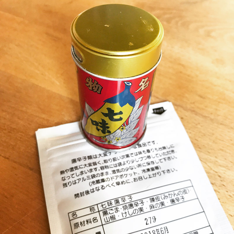 切らしていたので暮れに買い足した、大好きなやげん堀の七味唐辛子。中身のメモ。
