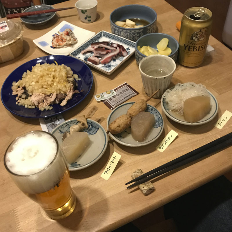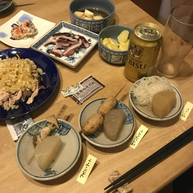 居酒屋我家、開店。今日も作ったものはほとんど無くて、買ったものといただいたものがほとんど。