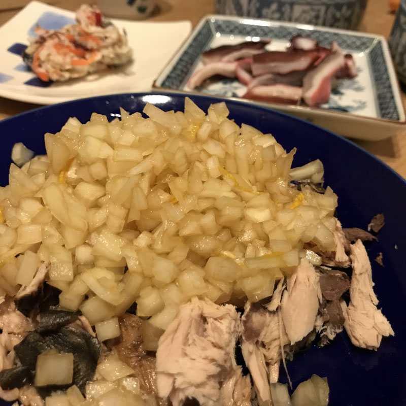 玉ねぎと柚子を和えて。