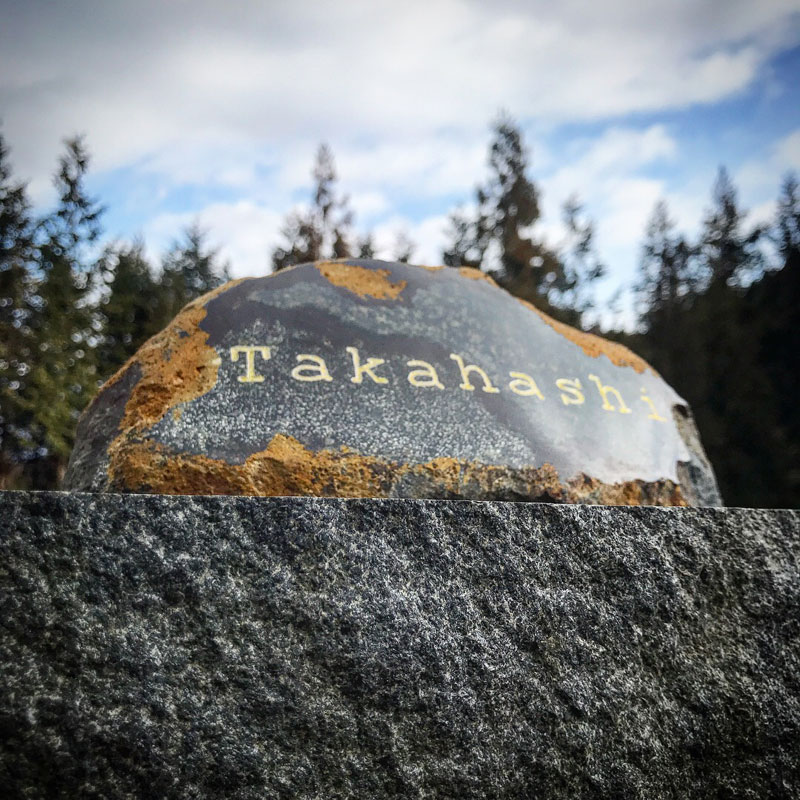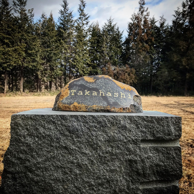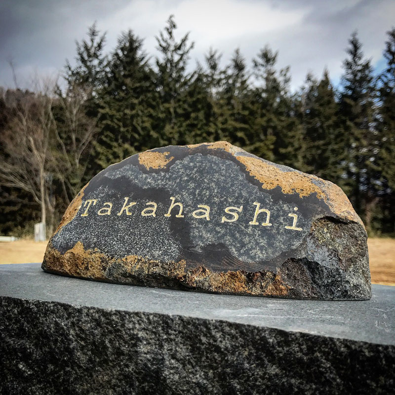 サンドブラストで既製のフォントのまま彫ることも出来るんだけど、この泥をまとった個性的な石には少しゆらぎがあっても手彫りの字が合っていると思う。