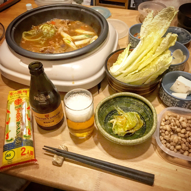 昨日のキムチ鍋の続き(笑)マルタイラーメンで〆ようと思ったけど、自家製納豆や塩蔵昆布の佃煮つついてビール飲んでたらお腹いっぱいになって今宵もたどり着けず。