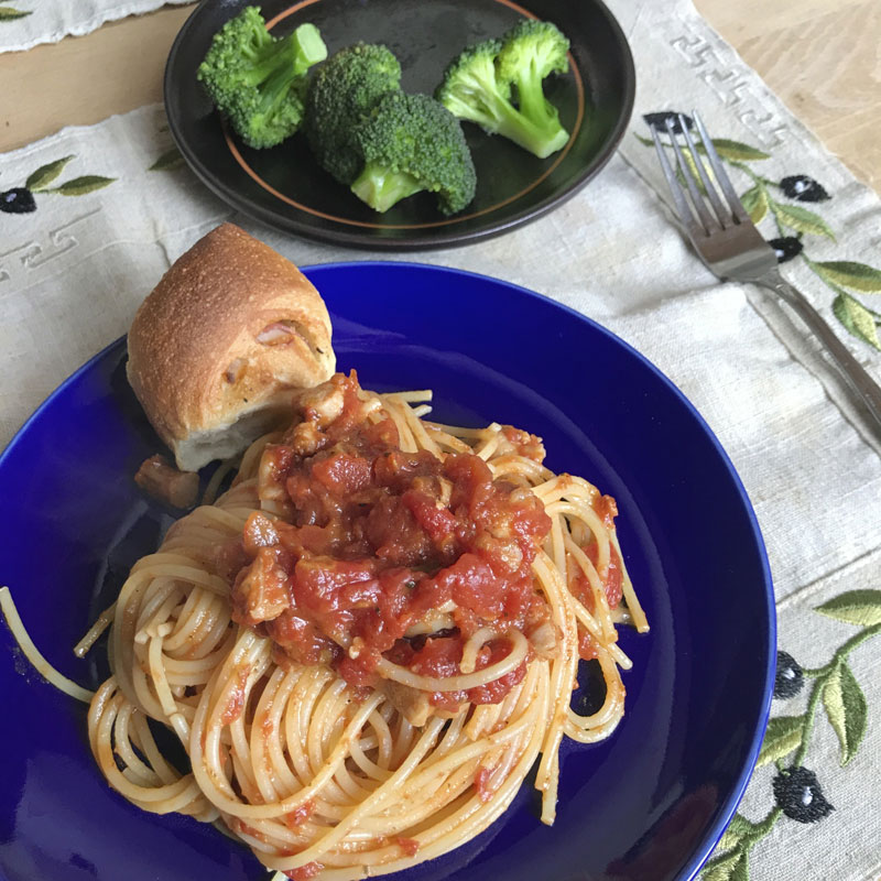 トマト鍋の残り物パスタ 朝、2階の居間から見た空。 ほんのり甘い、ごま豆餅。 あぐりっとのお餅は美味しい。 昨晩のトマト煮の残りでパスタのランチ。 ベーコンエピと。 夕方の空が幻想的だった。 今宵は飲まないはずだったんだけど食事の間だけ飲んでしまった。 思いがけずカルムイク共和国の思い出に包まれた日だった。幸せ。 2018年1月28日 | コメントはまだありません | カテゴリー: 三日坊主日記