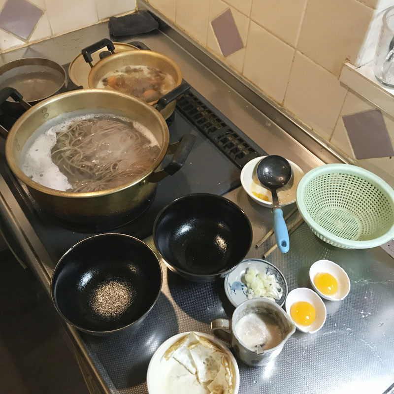 夕食に岩手名物土川そばを茹でる。