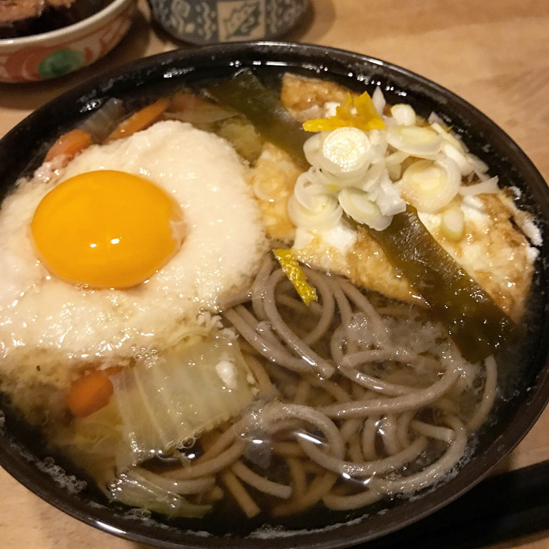油揚げに見えるのは卵の白身を焼いたもの。とろろには黄味だけ乗せたかったので。