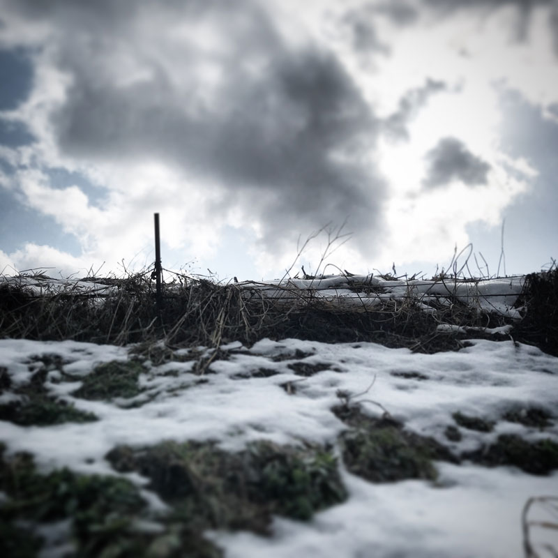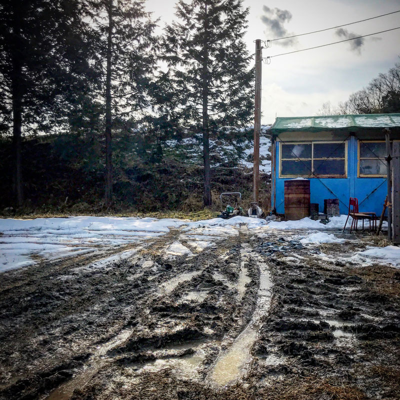 雪が融けて泥沼と化した仕事場。春が近い。