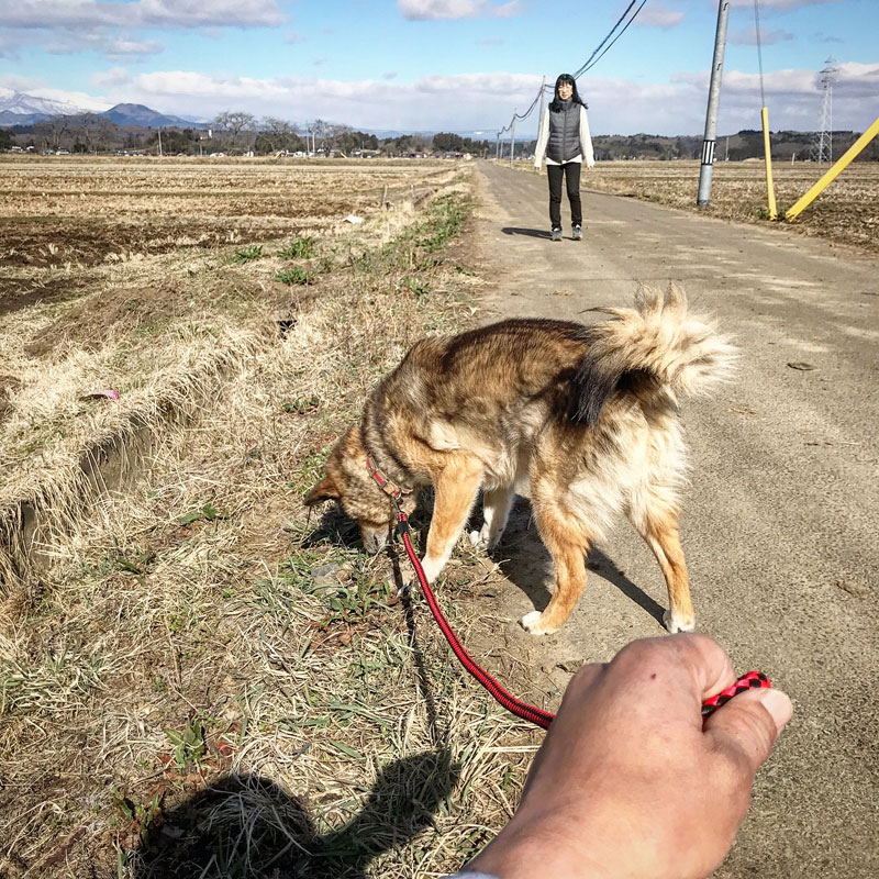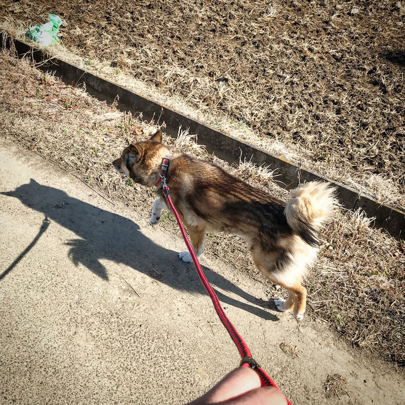 チャオと一緒に散歩。